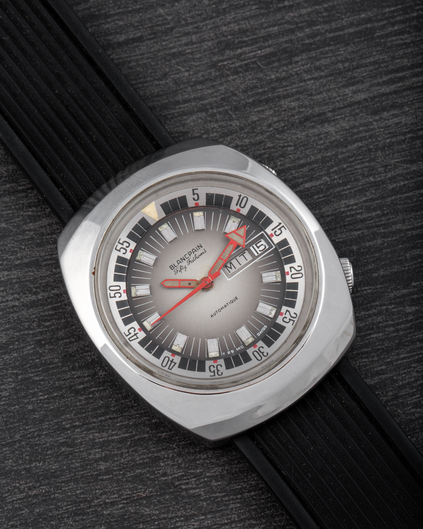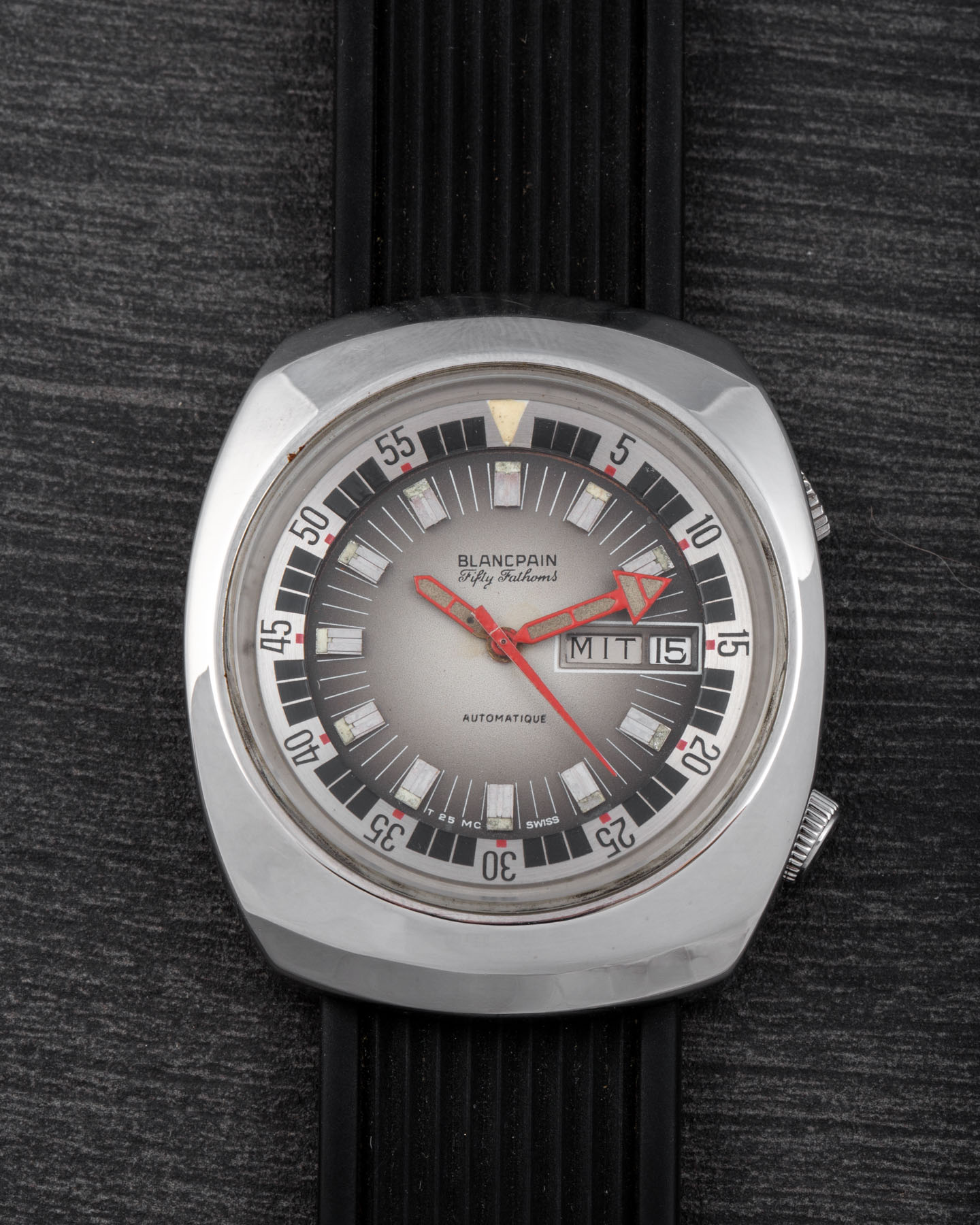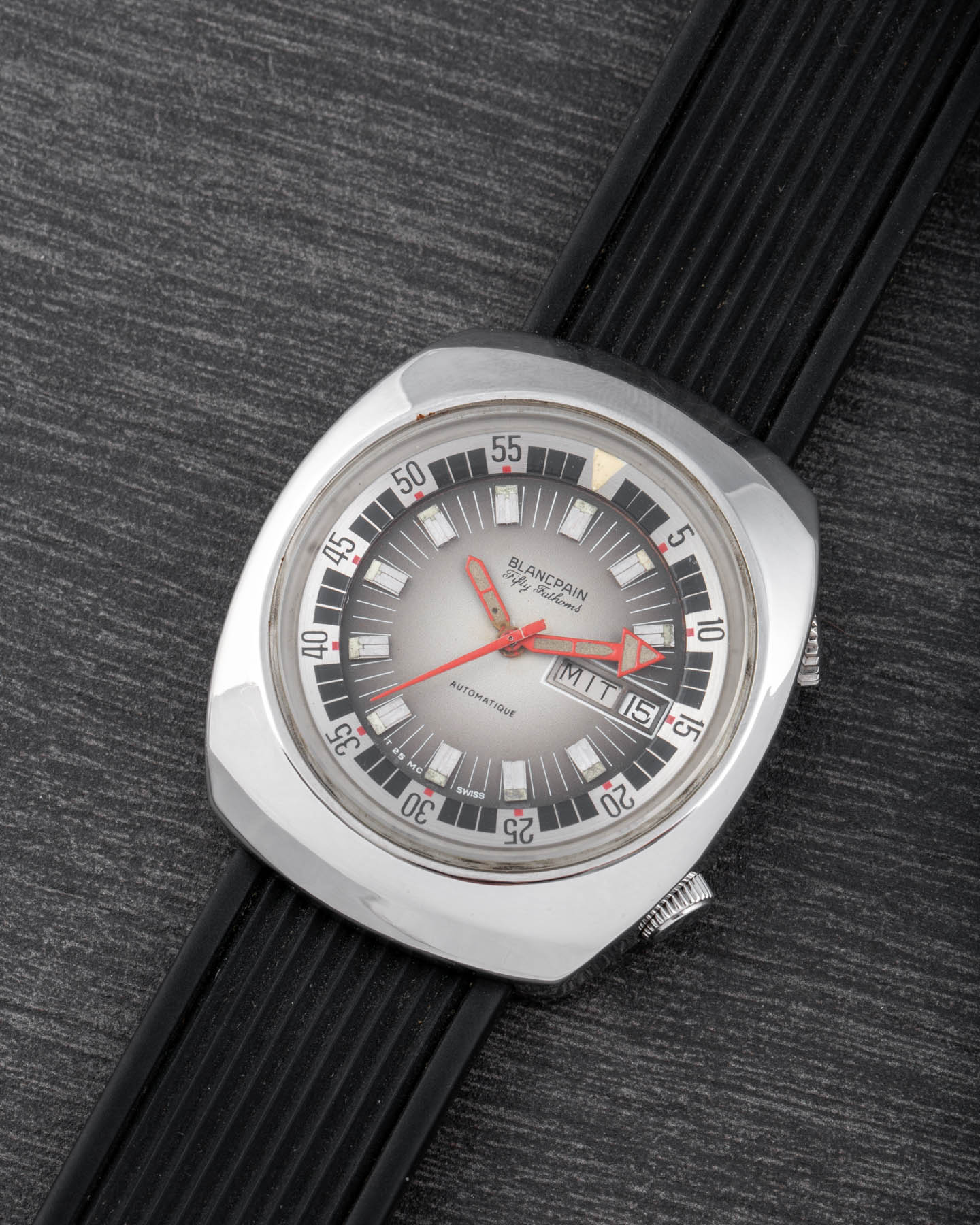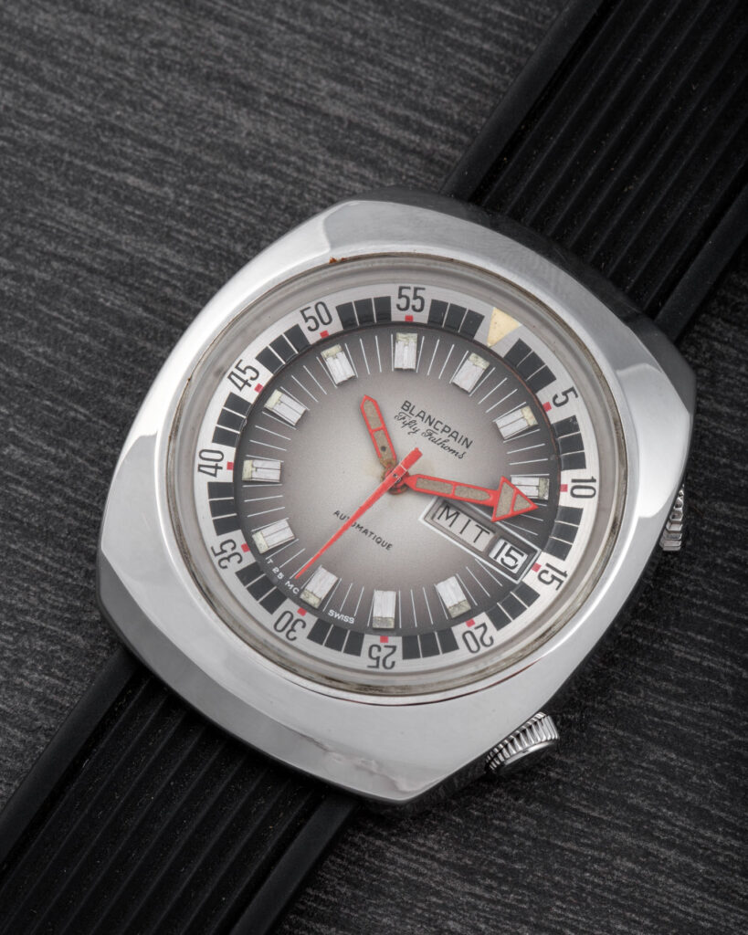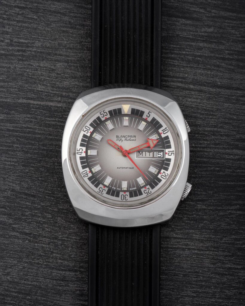 This Blancpain is an exceptionally rare watch — one of the very few Blancpain Fifty Fathoms models with a Compressor case supplied to the Polish Navy starting in the 1970s.