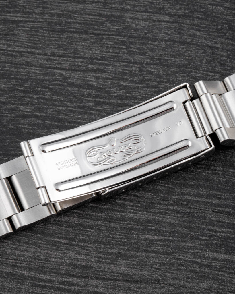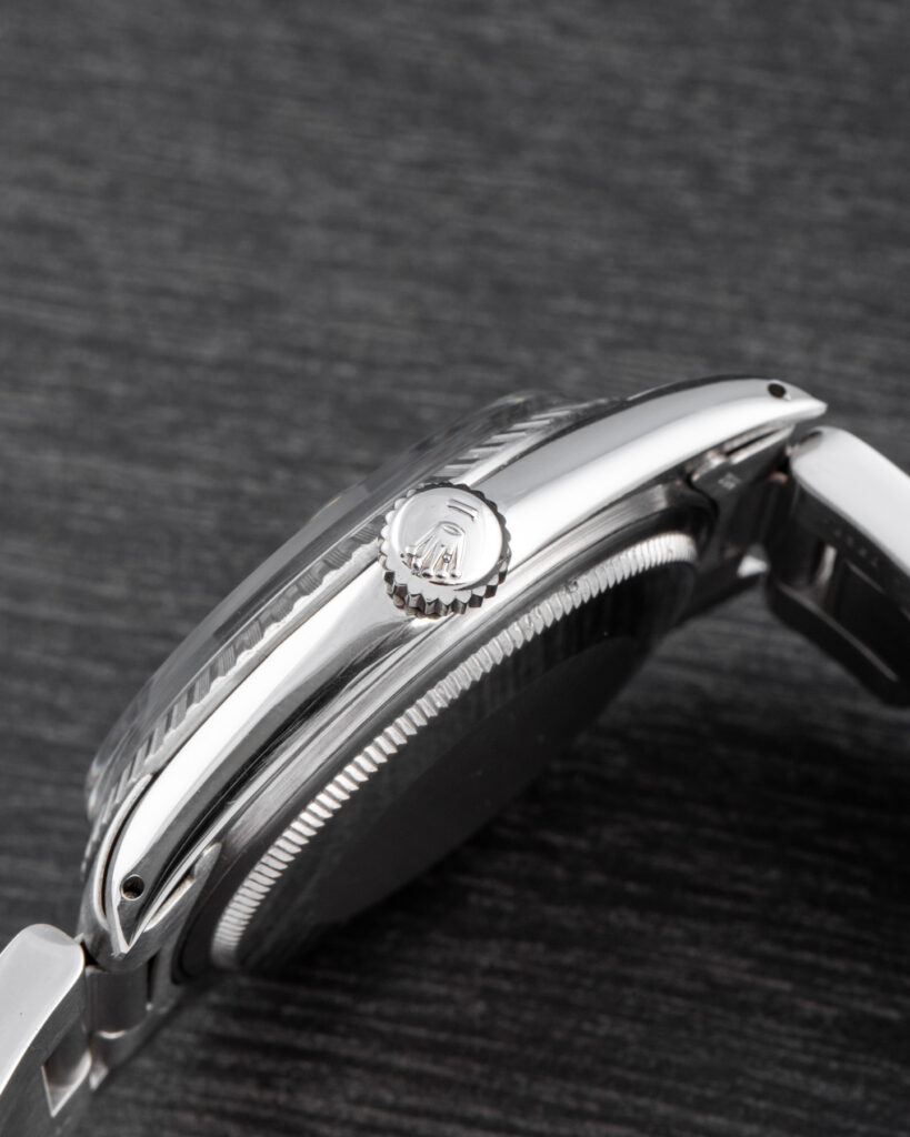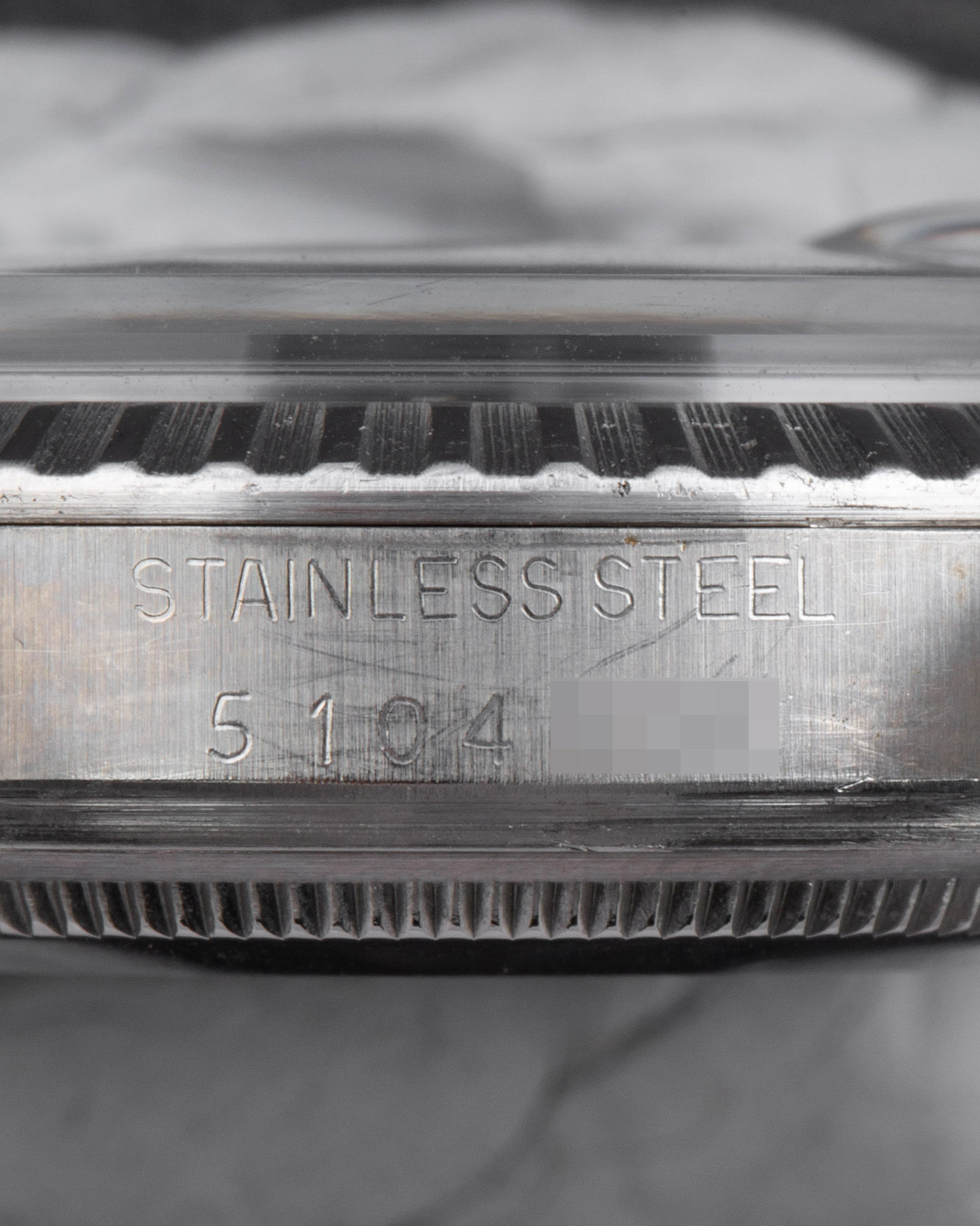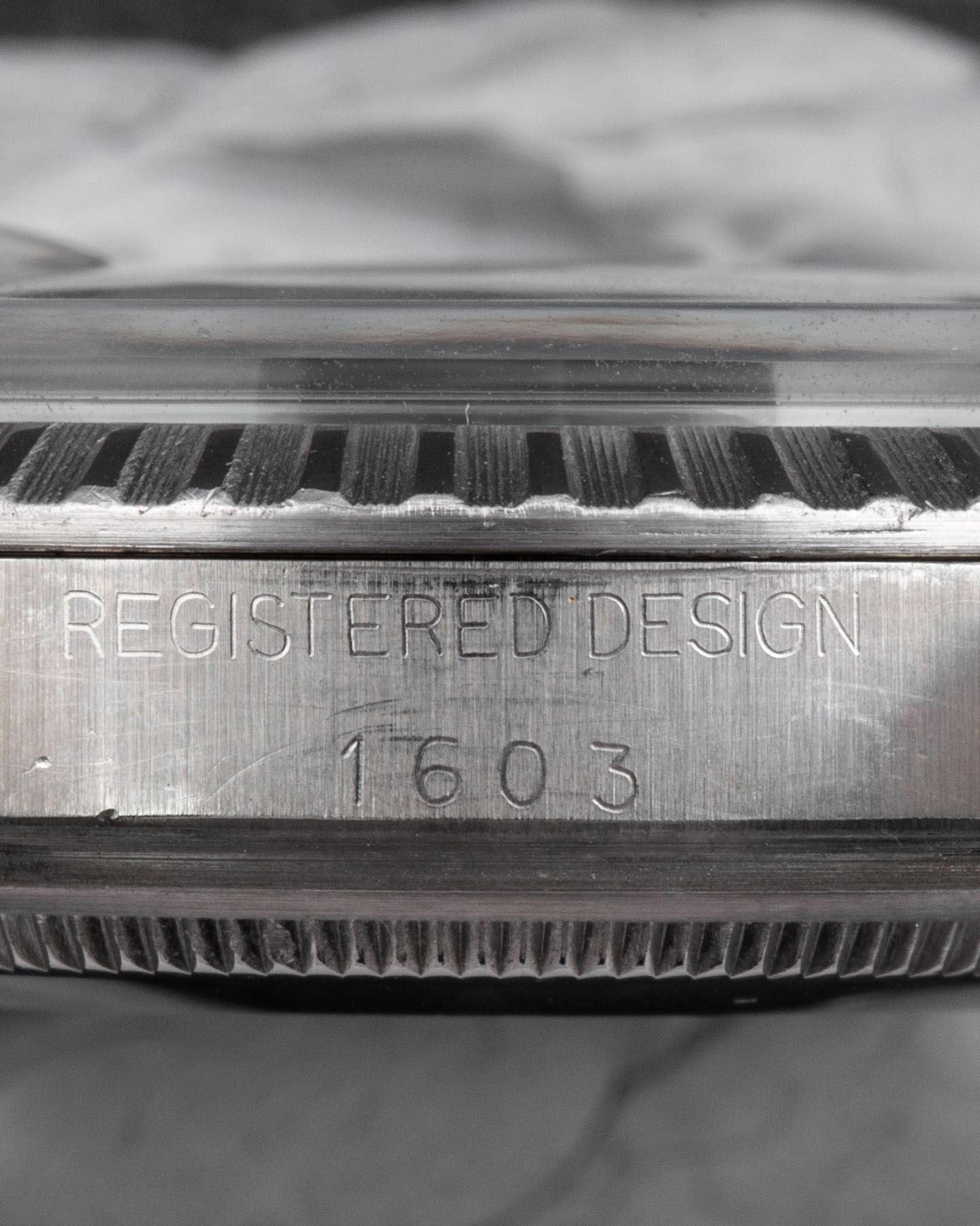 Compared to the more famous ref. 1601, it stands out for its steel engine-turned bezel, which gives it a more understated and less flashy appearance.
