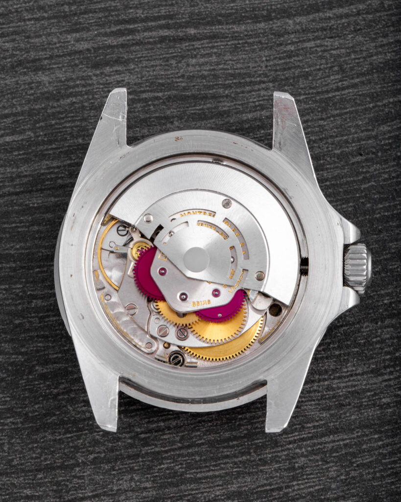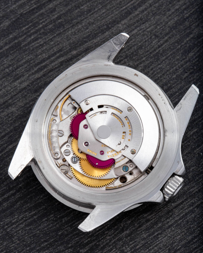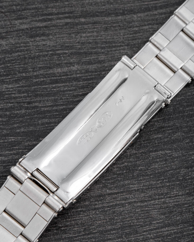 This watch is completely original, featuring a well-preserved case and a flawless glossy gilt dial. All components are period-correct (dial, bezel, caliber, caseback,crown, tube) except for the insert, bracelet, and hands, which have been replaced over time.