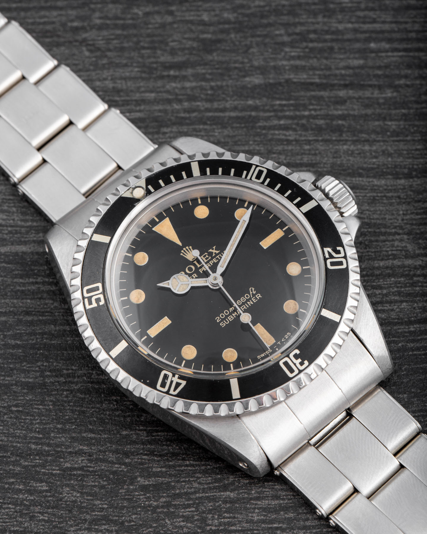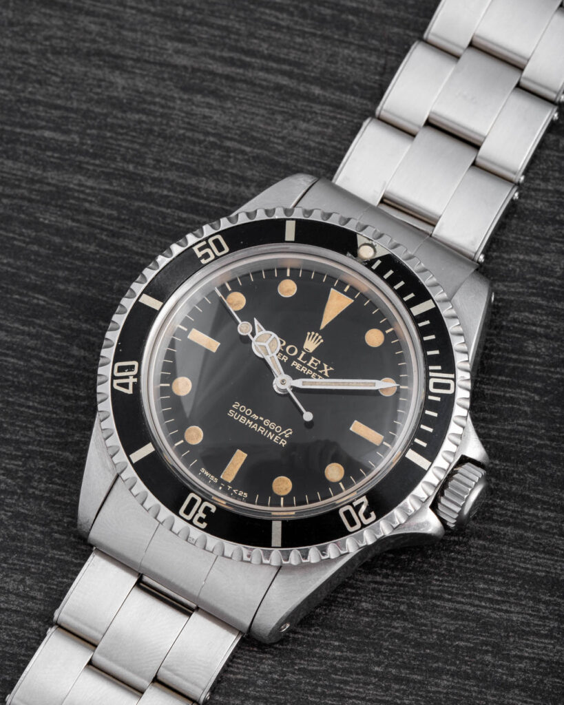 The overall condition is excellent, with a pleasing patina, a strong case, a tight bracelet with no stretch, a perfectly functioning movement, a superbly preserved dial, and an intact bezel insert.