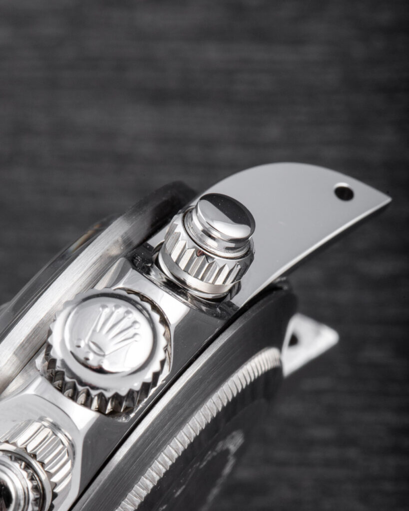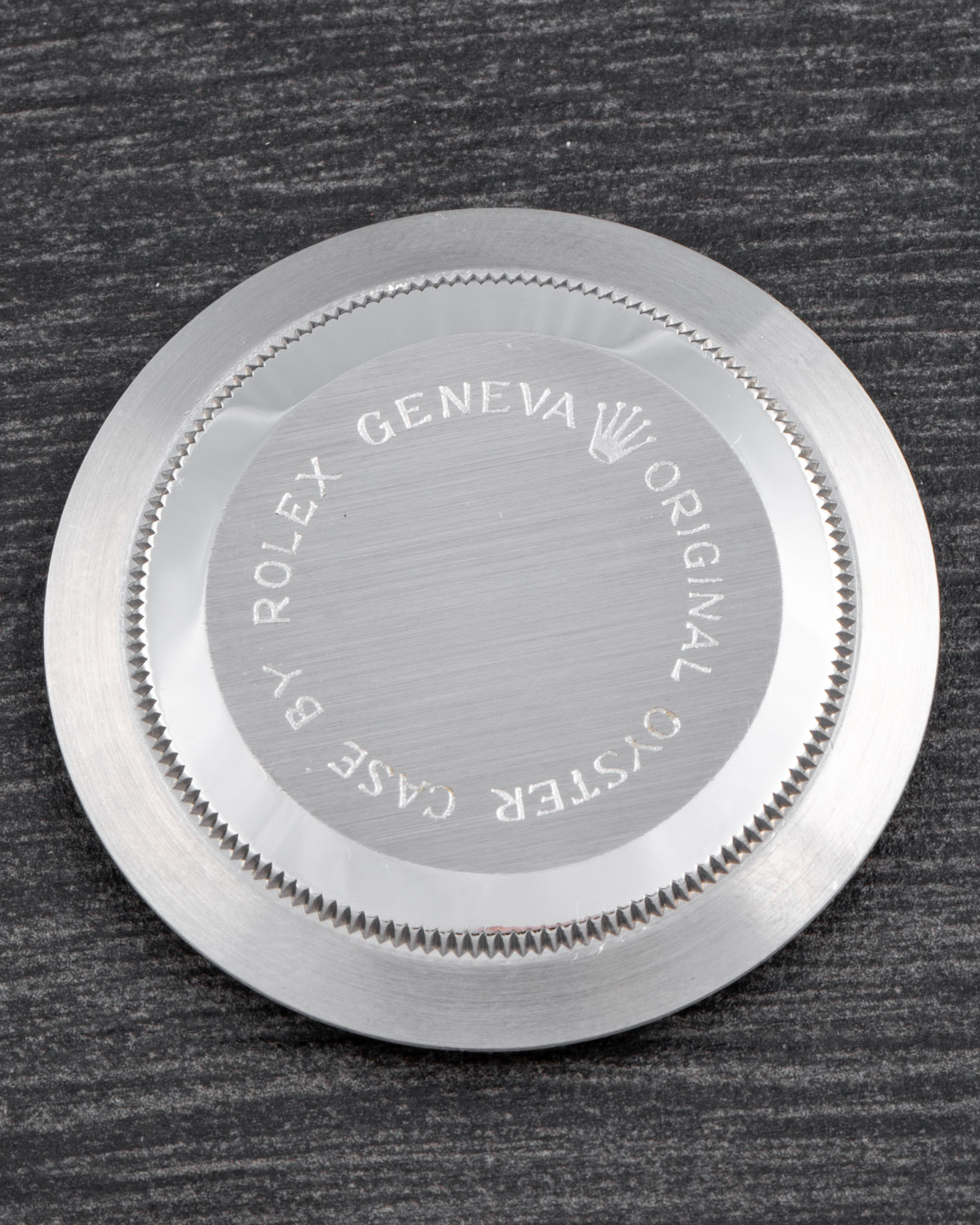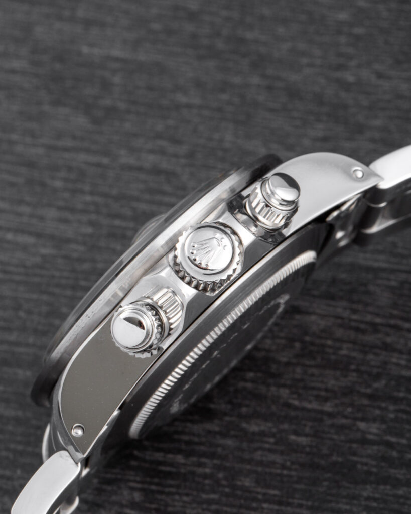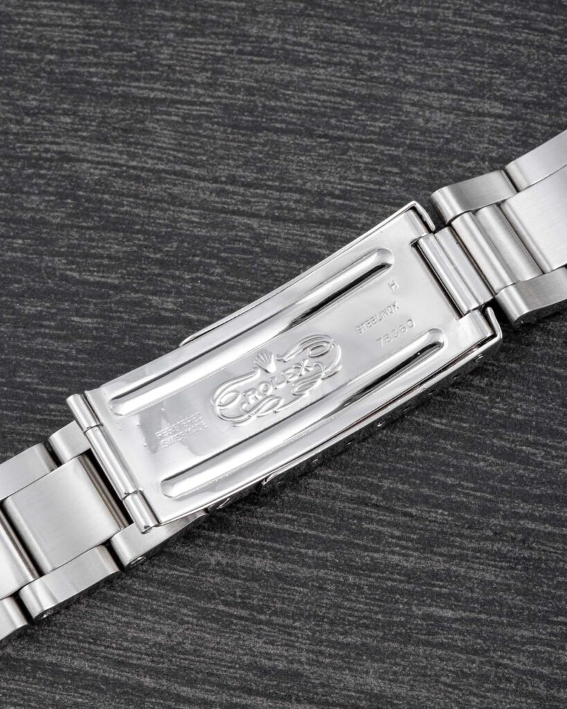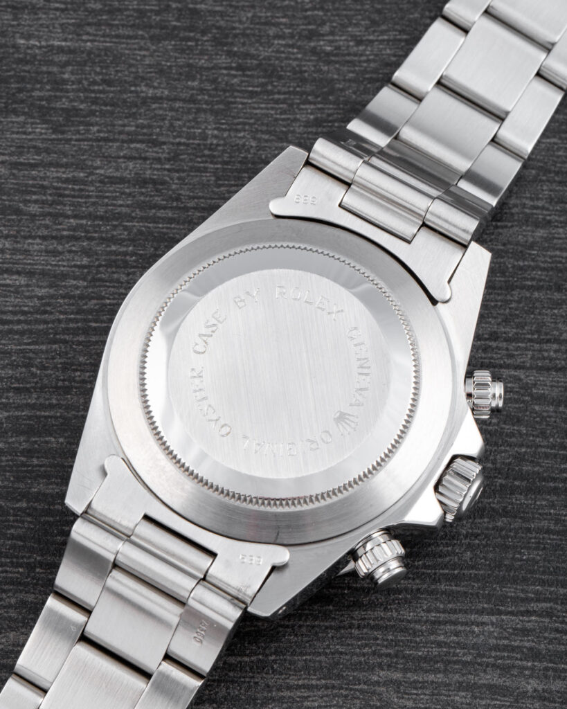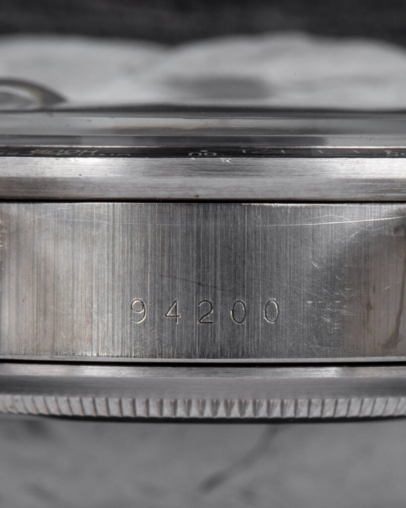 In addition to its superb preservation, the watch is completely original and period-correct in all key components: acrylic bezel, P302 pushers, tritium “Halloween” dial, Valjoux 7750 movement, 78360 bracelet with 589 end links, and caseback signed 94200.