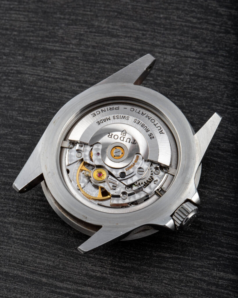 Inside the caseback are several service markings, including one performed in Geneva at a Rolex service center, a detail that further enhances the desirability and collectability of this Tudor 9401/0.
