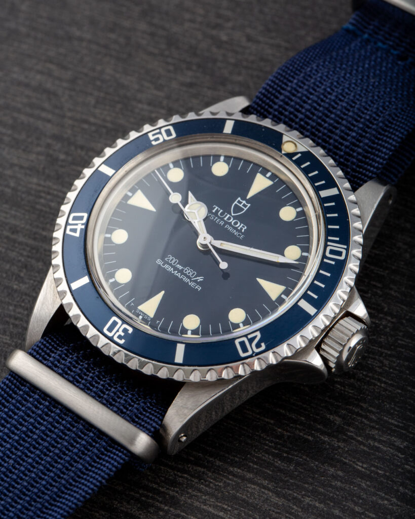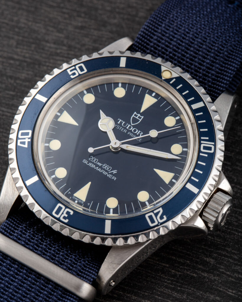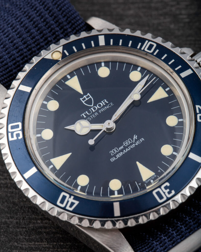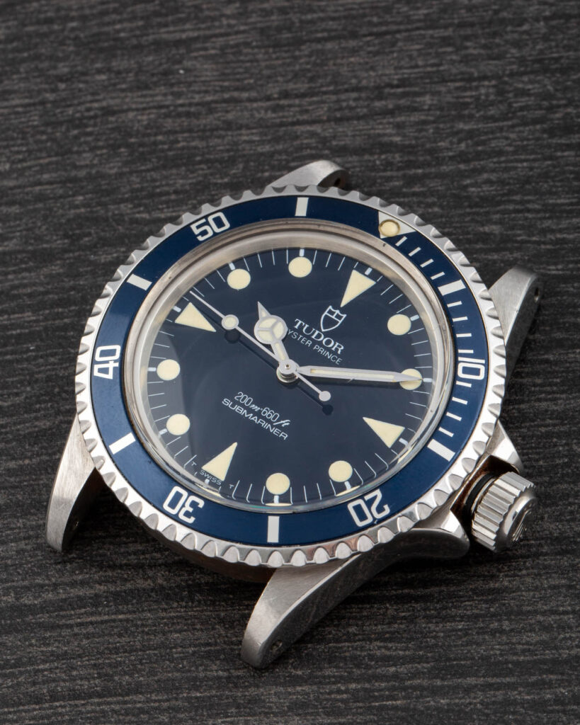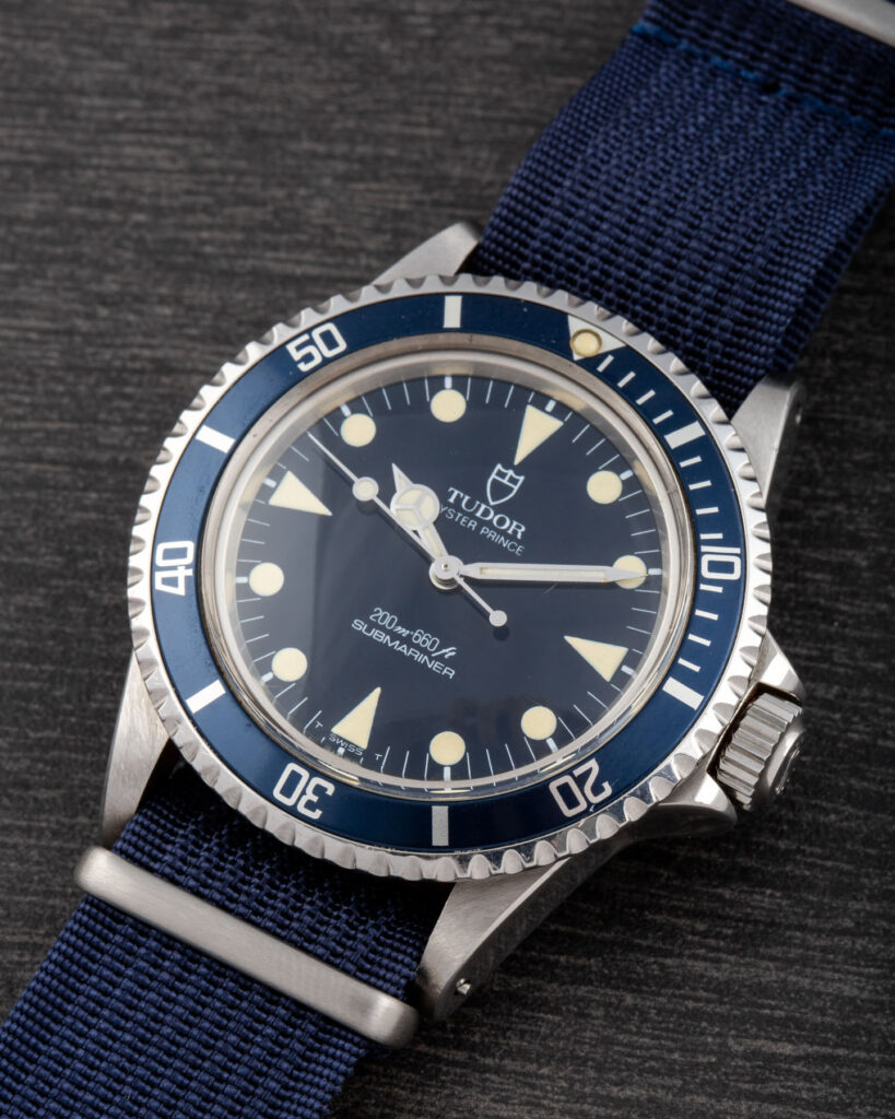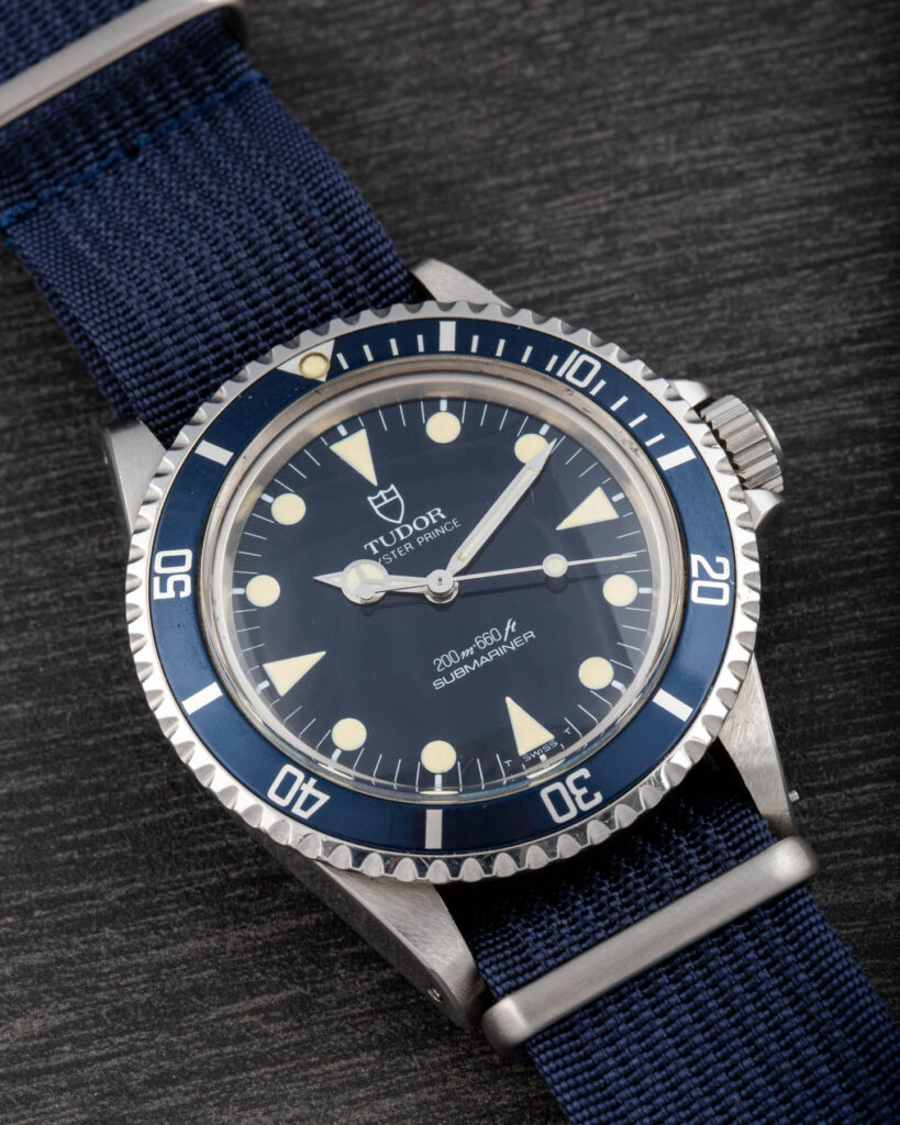 This watch is a Tudor Submariner ref. 9401/0 with a blue dial and bezel, an example that was indeed issued to the Marine Nationale. Its assignment dates back to 1982, as engraved on the caseback, one of the final batches supplied to the French Navy.