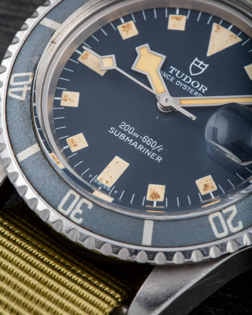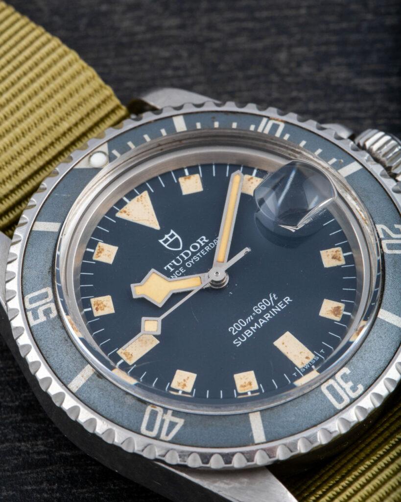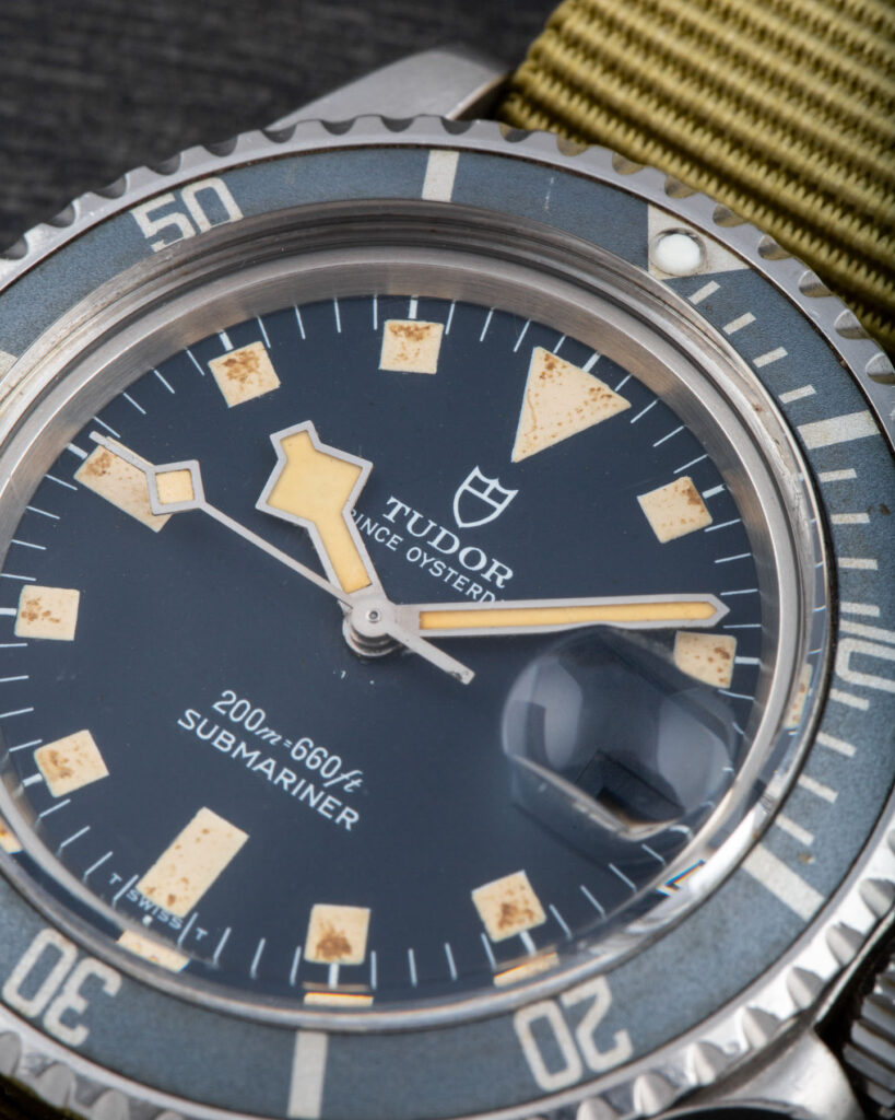 The dial shows a few marks around the center from prior removal of the hands—likely by military technicians not always familiar with Tudor or Rolex watches—a detail common and understandable for militarily issued watches. Nothing that diminishes its charm; in fact, it underscores its authentic history. All military issue watches often show visible signs of use—they’re part of their character.